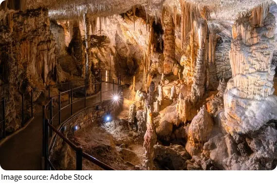 The cave maintains a constant temperature around 10°C (50°F) year-round.